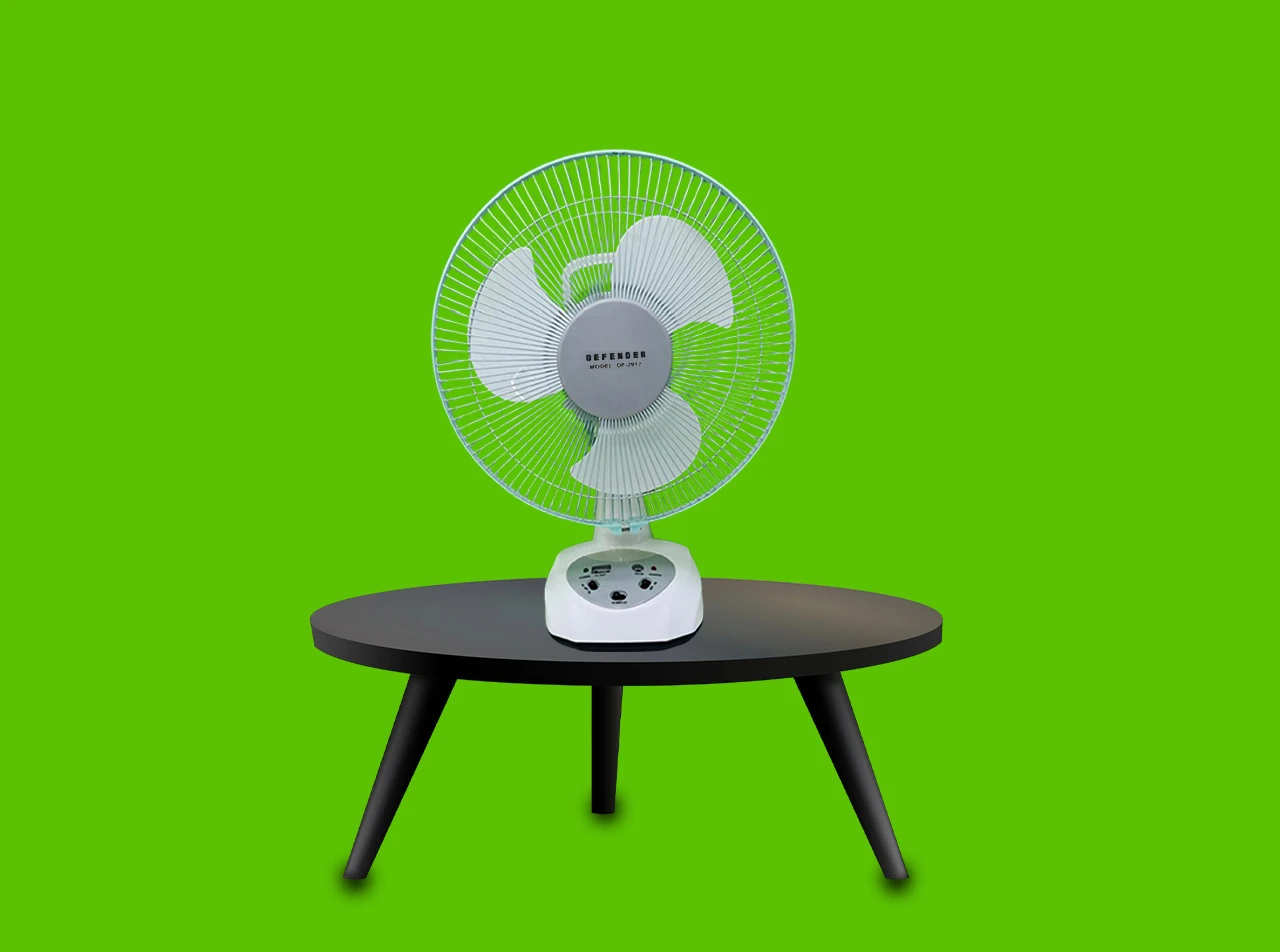 Defender Rechargeable Table Fan PF-2912 – Long Battery Backup, 3-Speed, AC/DC, LED Light | Best Price in Bangladesh