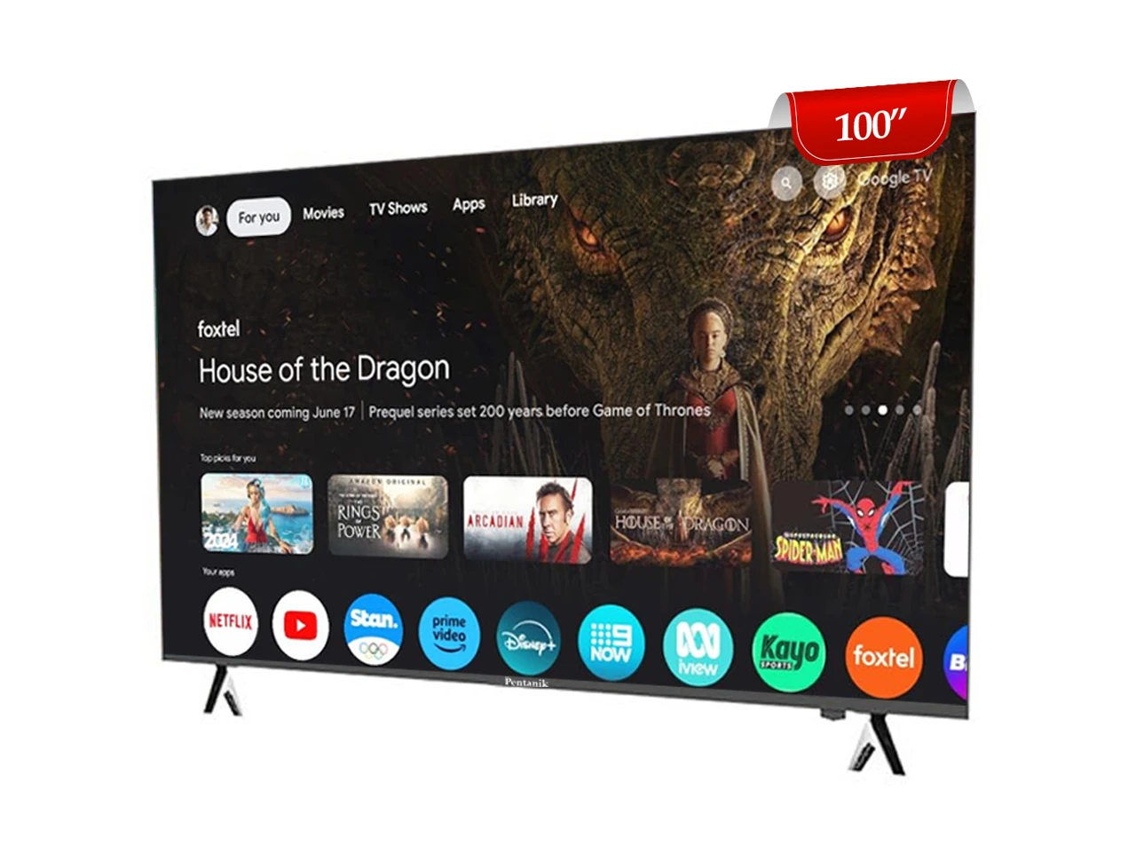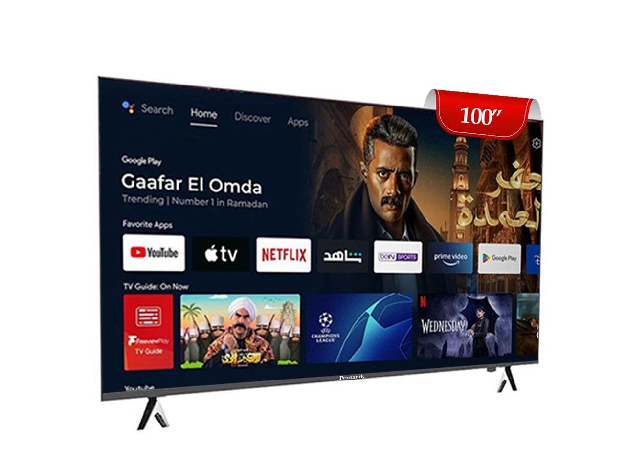 Experience the future of home entertainment with the Pentanik 100 Inch Google 4K Voice Control TV – designed for Bangladesh’s modern homes and businesses. Whether you’re watching movies, hosting sports nights, or using it for presentations, this giant screen delivers breathtaking clarity, powerful sound, and smart features that make life easier. From 4K Ultra HD resolution to hands-free voice control, this TV brings cinematic quality right into your living room.